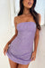 Get ready to sparkle in the Arletta Dress! With a strapless design and a-line fit, this sequin mini dress is perfect for any party. The double lining and silicone tape on the inside of the neckline provide a comfortable and secure fit. Complete the look with your favorite pair of heels and you have the perfect birthday dress!