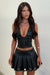 Unleash your edgy side with the Braska Faux Leather Pleated Mini Skirt in black! Made with soft PU leather and featuring a playful pleated design, this low rise skirt offers a flirty silhouette. Complete with silver eyelet detailing and an invisible side zip, it's the perfect piece for a festival look when paired with the Braska Top and boots!