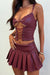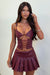 Turn heads in this Coyote Faux Leather Pleated Mini Skirt! The low rise fit and thick waistband enhance your figure, while the pleated design and leg split add a touch of playfulness. The silver detailing and side zip closure adds a bit of edge, perfect for the hottest festival outfit. Pair with the Coyote top for a complete look!