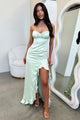 Make a statement at your next event in the playful yet stylish Lauren Dress! This maxi dress features a seam under the bust for a flattering boning effect and thin adjustable shoulder straps. The invisible back zip and side split with frill detailing add flair and pair perfectly with cute heels.