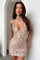 Pretty in Pink! The Tesla Dress offers double lined material with sequin designs, a v neckline, thin adjustable straps and an open back. Style her with nude heels, a nude lip some gold accessories.