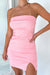 Next level update in the Charms Mini Dress! She offers a structured bodycon fit, a strapless cut, a little side slit, double lined material and an invisible back zipper. Style her with black heels, a little bag and some hoops for a chic stylish look.